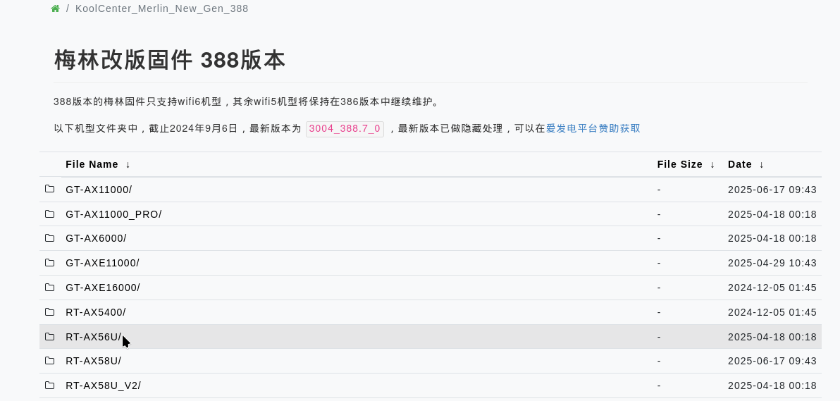 With the Merlin firmware installed, the next step involves downloading the Koolshare “revised firmware” compatible with the router model. This can be done by visiting https://fw.koolcenter.com/KoolCenter_Merlin_New_Gen_388/RT-AX56U/ and choosing your model.